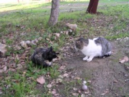 O An Jie apressou-se a passar à frente do gato preto e veio para ao pé de mim, ronronando e enrolando-se-me nas pernas. Eu estava apenas calado e imóvel. Voltou atrás e em paralelo com o gato preto colou-se a ele, ronronando e dando cabeçadinhas na cabeça dele. E assim progrediram os dois colados até se abeirarem da tigela amarela onde o gato preto se pôs a comer avidamente e o An Jie, sem desgrudar, cabeceava ternamente na cabeça do outro ... da outra, como não tardei a aperceber-me com este jeito que tenho de olhar logo para onde algumas pessoas me dizem que não devo.. cabeceava e olhava para mim com os olhos de um apaixonado. Assim ficaram os dois algum tempo, ela a bater-se com o atum (ou seria vaca, ou frango?), e ele, ora às marraditas, ora a olhar para mim todo vaidoso. Acabado o repasto da dama, trouxe-ma o An Jie ao pé de mim (espantosa a confiança com que ela o seguiu para abordar um estranho!) e olhando-me directamente nos olhos, coisa que um gato em situação normal jamais fará, disse-me: